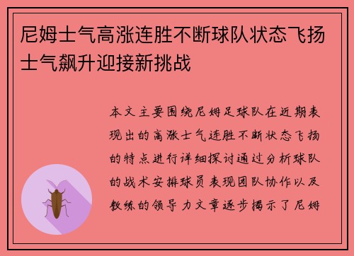 尼姆士气高涨连胜不断球队状态飞...